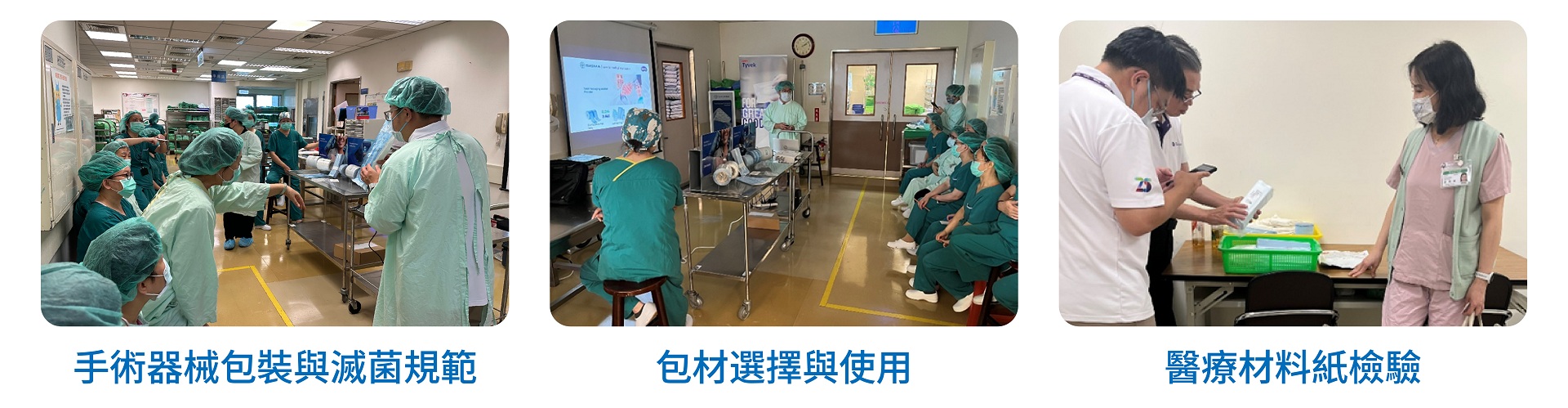 - 實務操作搭配案例討論:以真實發生的操作情境為教材,例如爆袋原因分析、包材選用判斷、雙層包裝常見問題等,引導醫護人員從問題中學習、在討論中成長。